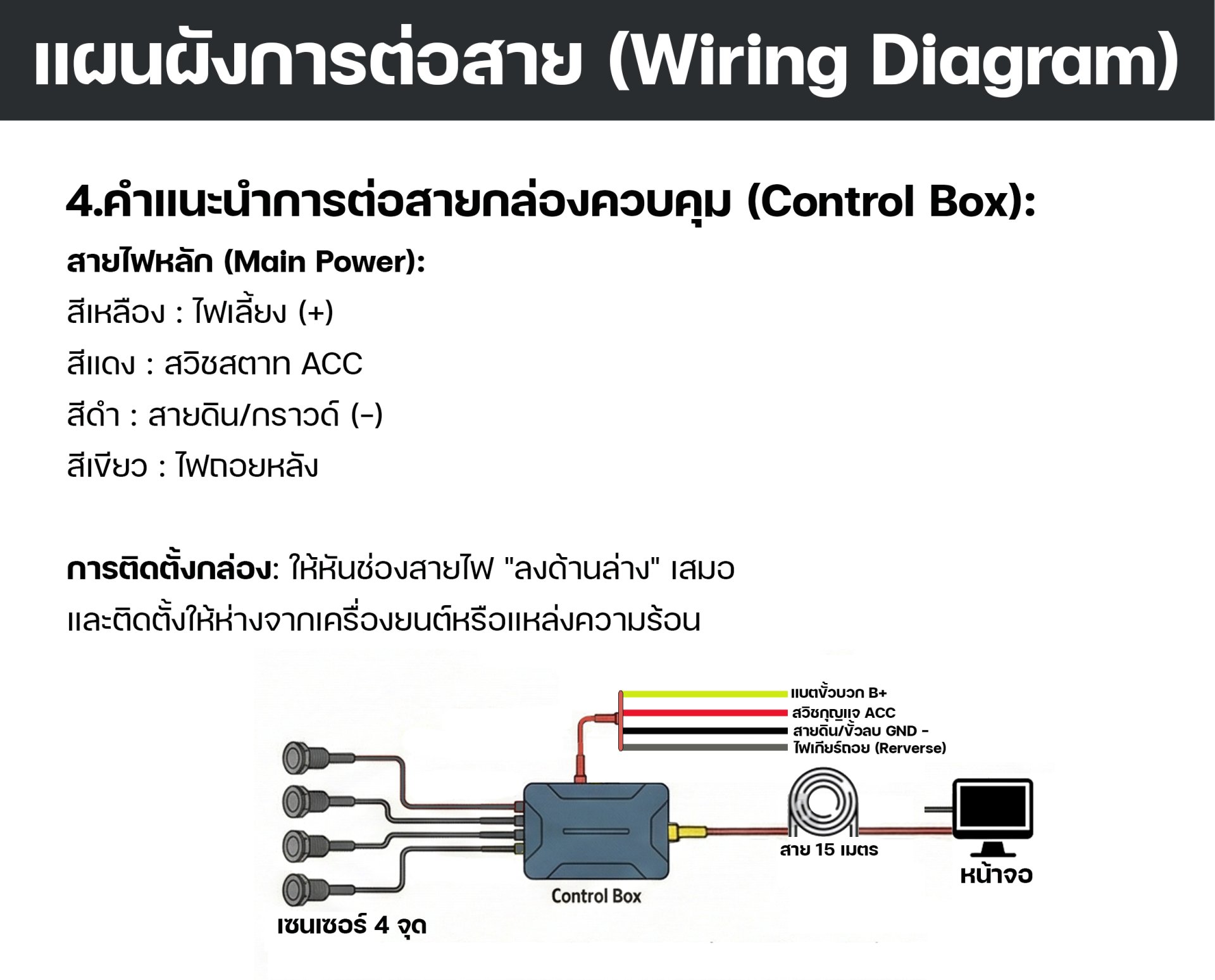 Extra Long Cable: มาพร้อมชุดสายสัญญาณความยาว 15 เมตร (และสามารถต่อขยายได้) ออกแบบมาให้เดินสายจากท้ายรถมาถึงหน้ารถสิบล้อหรือรถพ่วงได้สบาย